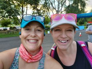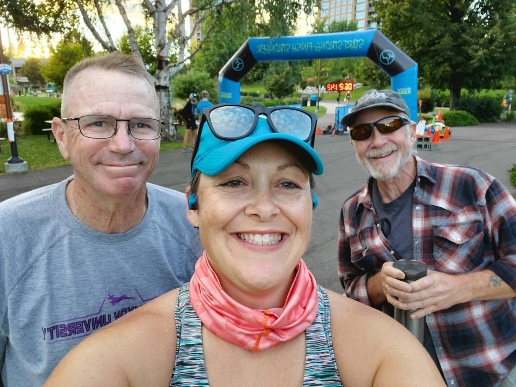 Race day! My cousin Jessy was running the half and met me at the starting line for a quick hug and pic. My dad drove up too. My husband and two of my kids were there to cheer me on. They were also my mobile aid station.