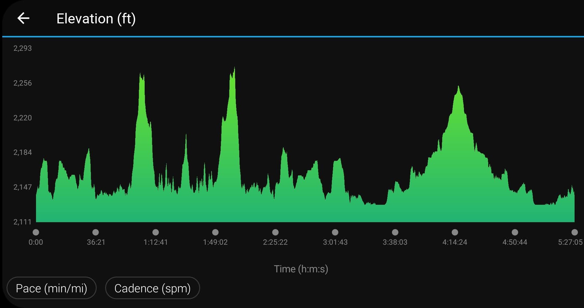 I was back in town and saw my husband and dad around mile 14. I got some quick A&D cream for chafing arms, chapstick, and banana. Oh, did I mention I forgot my handheld water bottle?! The aid stations passed out water bottles and GUs. So, I carried a water bottle, like a clear plastic Earth2o bottle from the first aid station to the end. Not ideal. My husband told me that it was all flat from there. Take a look at the elevation. Nope, it was uphill. Gradual, but uphill. I was actually feeling pretty optimistic knowing that I was over half way done.